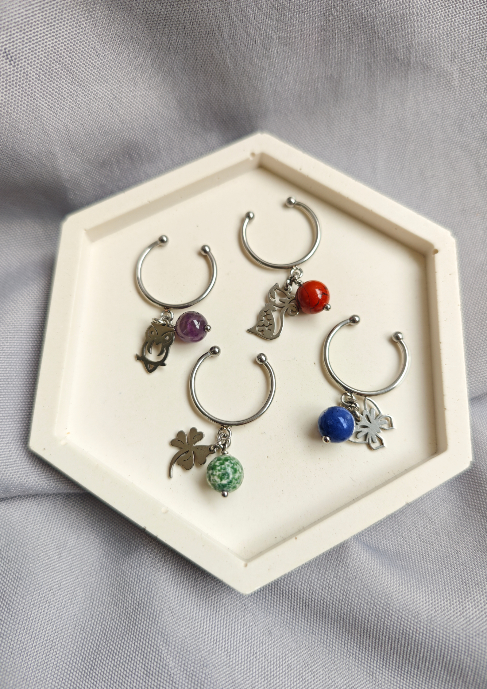 Ces bagues en acier inoxydable sont décorées d’une petite pierre naturelle et d’un motif discret (chat, trèfle, papillon…). Ajustables, elles se portent facilement au quotidien et se combinent sans problème avec d’autres bijoux.